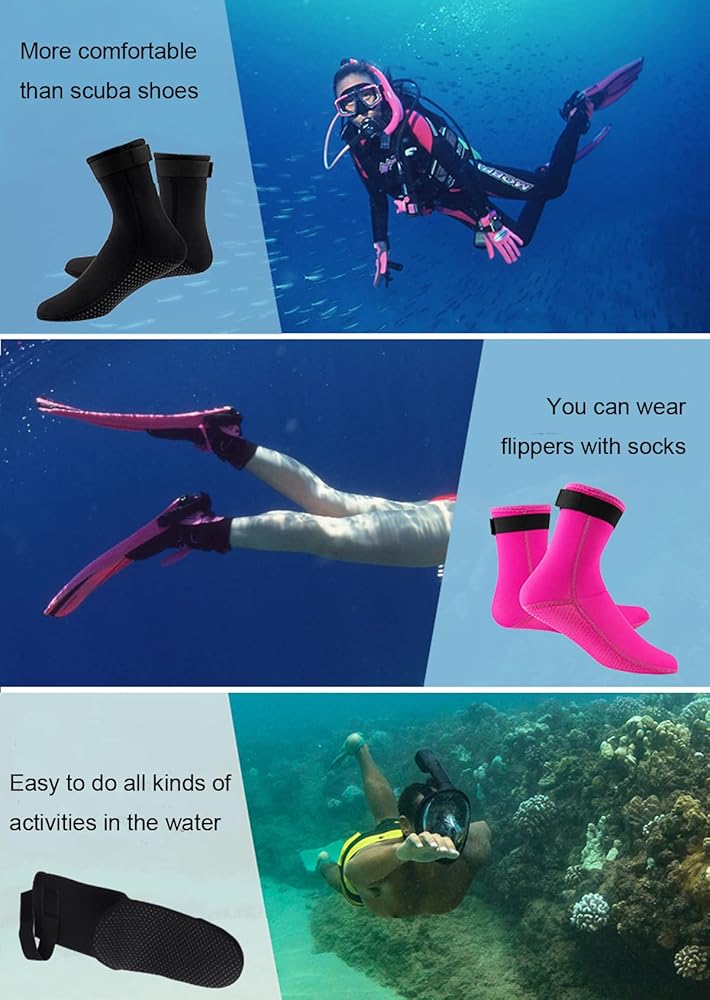 Multi-sport Socks - The neoprene dive & beach socks can be used by both men and women, fit snug. Lightweight and compressible, easy to fold and carry when you go out. Perfect for a variety of water sports like swimming, diving, surfing, snorkeling, wakeboarding, kayaking, sailing, especially as sand socks for beach volleyball.