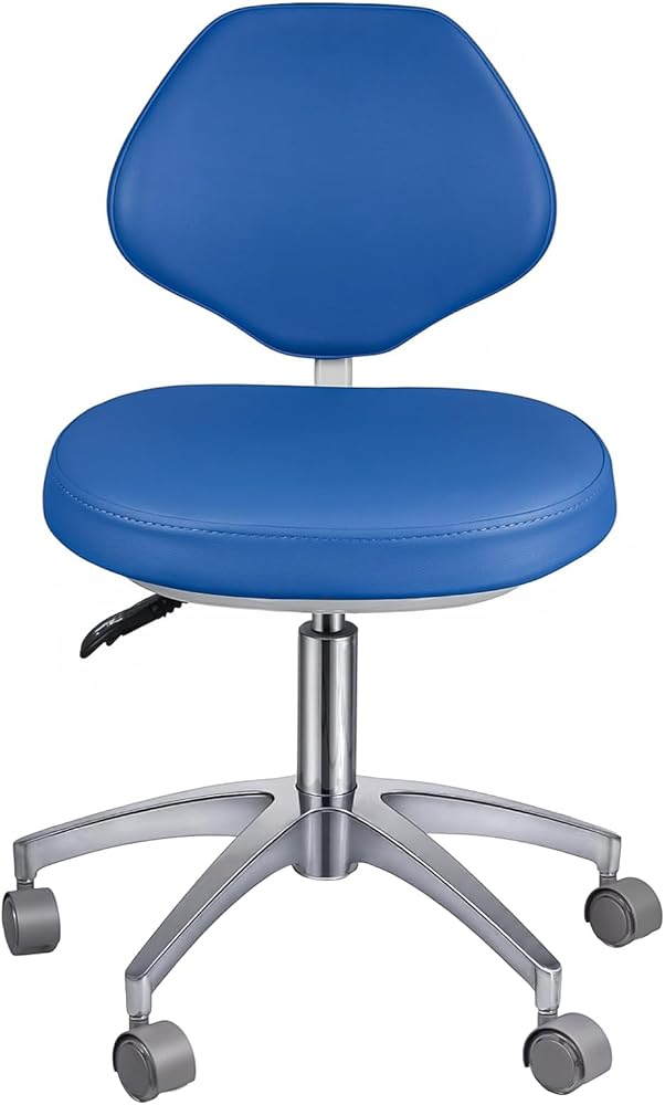 Ergonomic Medical Stool with Backrest - Heavy Duty Rolling Dental Chair with 45° Tilt Support, Adjustable Height Microfiber Leather Hydraulic Stool for Salon, Spa, Clinic, Office (Blue)