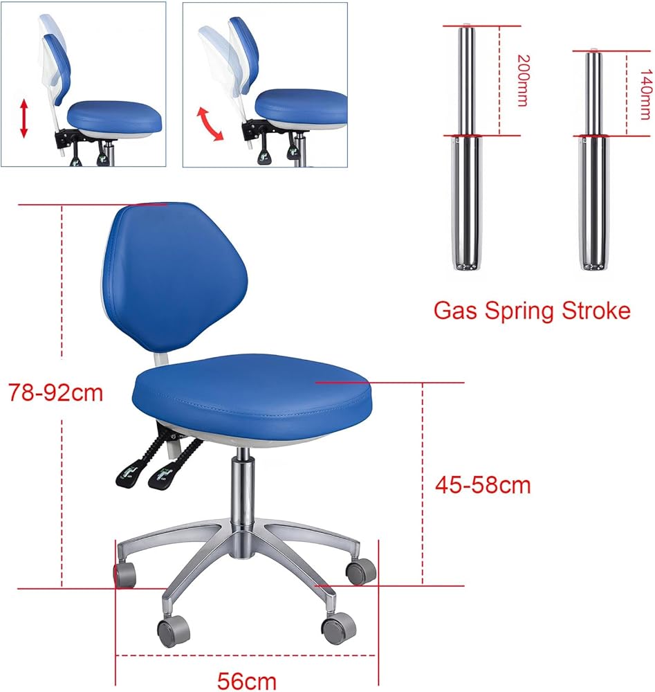 Dynamic Ergonomic Support: Features a specialized backrest mechanism that reclines or leans forward by 45°, adapting to your movements to provide continuous lumbar support and reduce back strain during long working hours. Ideal for dentists, doctors, tattoo artists, and estheticians.