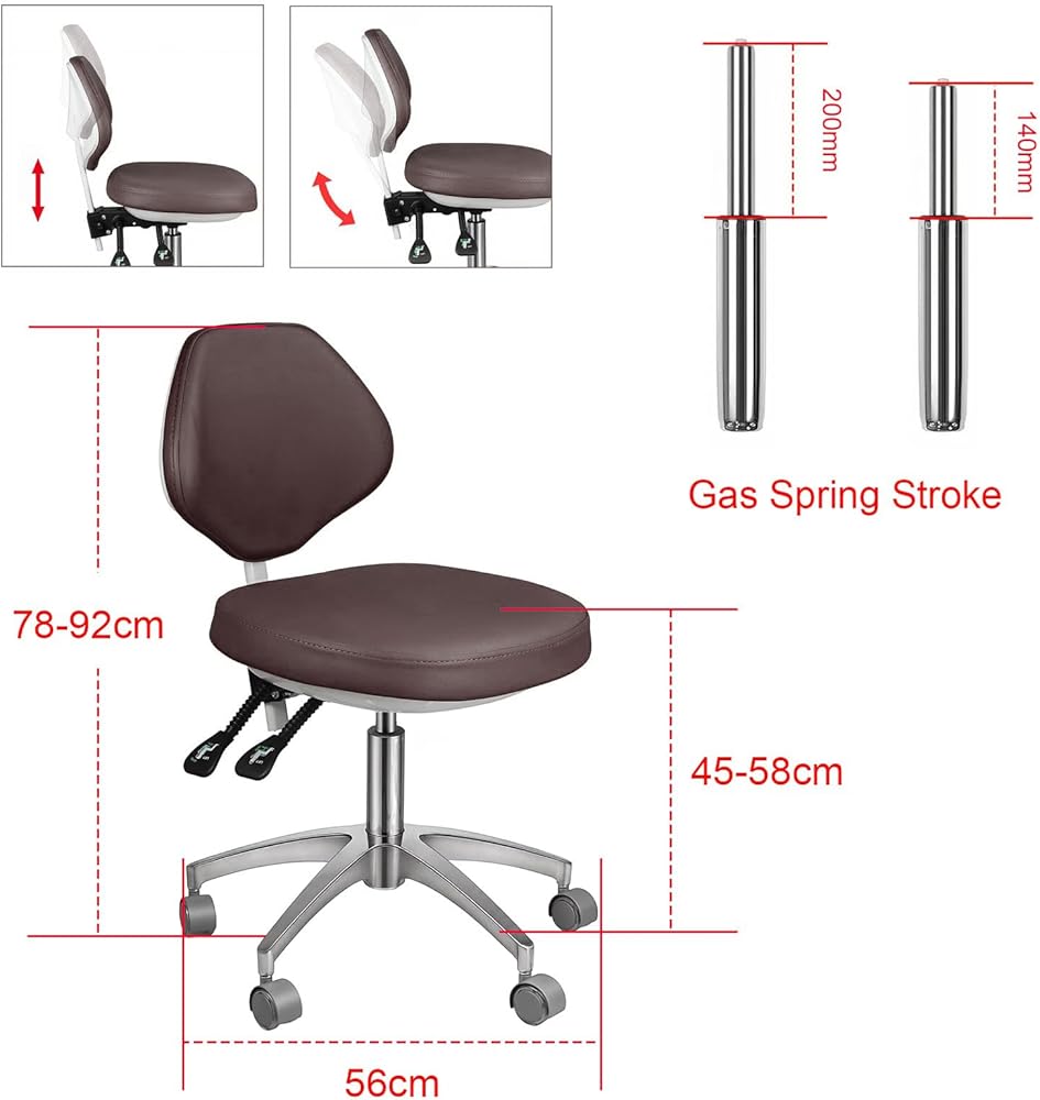 Dynamic Ergonomic Support: Features a specialized backrest mechanism that reclines or leans forward by 45°, adapting to your movements to provide continuous lumbar support and reduce back strain during long working hours. Ideal for dentists, doctors, tattoo artists, and estheticians.