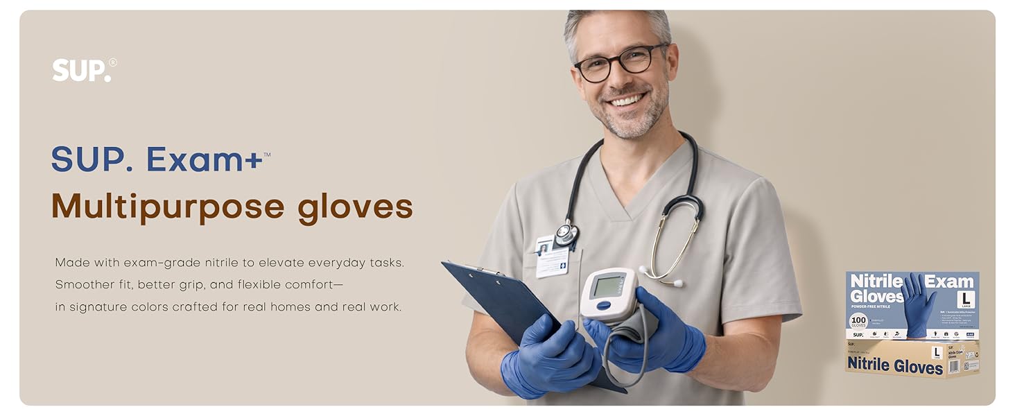 • MEDICAL EXAM GRADE 4 MIL: SUP Exam+ nitrile gloves deliver reliable exam-grade barrier protection with excellent tactile sensitivity — ideal for medical exams, food prep, cleaning, and everyday tasks.