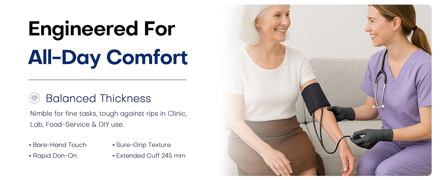 LATEX-FREE & POWDER-FREE: Supmedic nitrile gloves contain no natural rubber latex and are manufactured without powder - a safe solution for those affected by common glove allergies and sensitivities.