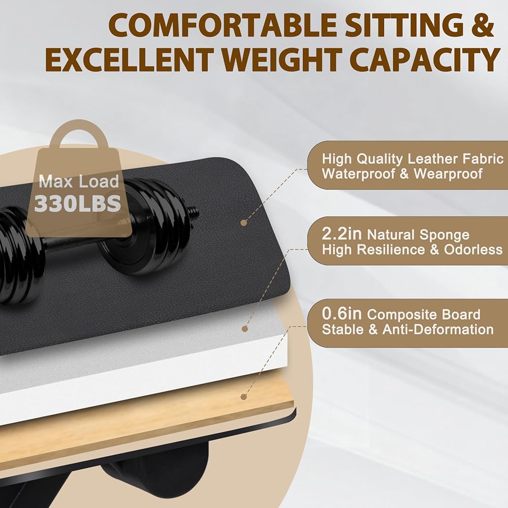 - This bench is fully adjustable for individual comfort, height is adjustable from 16.3 to 20.7 inches.