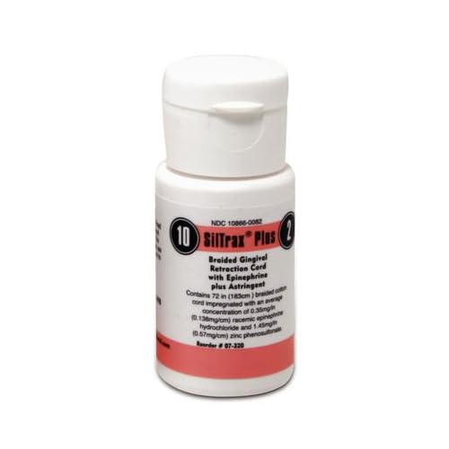Combination vasoconstrictor and astringent action in one cord. Impregnated with a solution containing both epinephrine hydrochloride and zinc phenolsulfonate, then dried by a special process. Assures optimal retraction. Epinephrine strength is 55%-70% less than SilTrax EPI. [72 inches (183cm) per bottle]. Pascal's unique NTS technology helps ensure consistent amounts of medicament throughout the entire length of the retraction cord. Consistent medication can help lead to consistent results.