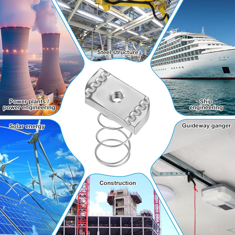 【What you get】50 Pcs 1/4 spring strut channel nuts, with US strut systems. Unistrut Hardware widely used in photovoltaic power generation, solar panel fixing, communications, seismic support systems, power infrastructure suspension, ceiling track installation etc. it is an ideal choice for pillar channel steel.