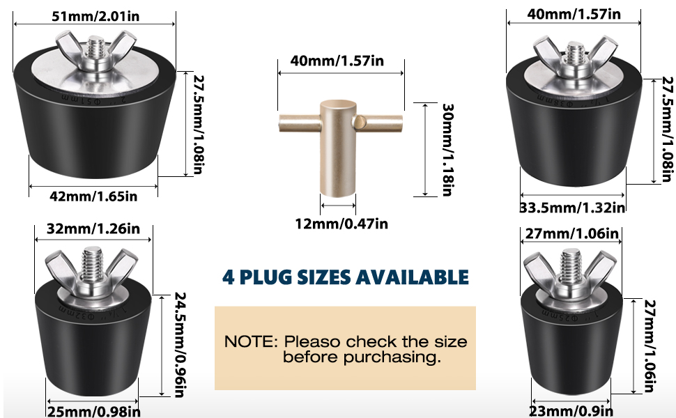 [Value Combination for Versatile Use]The set includes two rubber plugs in sizes:1" rubber pool plugs with One T-Handle,Rubber stopper dimensions: bottom diameter 2.3 cm, top diameter 2.5 cm, height 2.6 cm. NOTE: Pleaso check the size before purchasing.