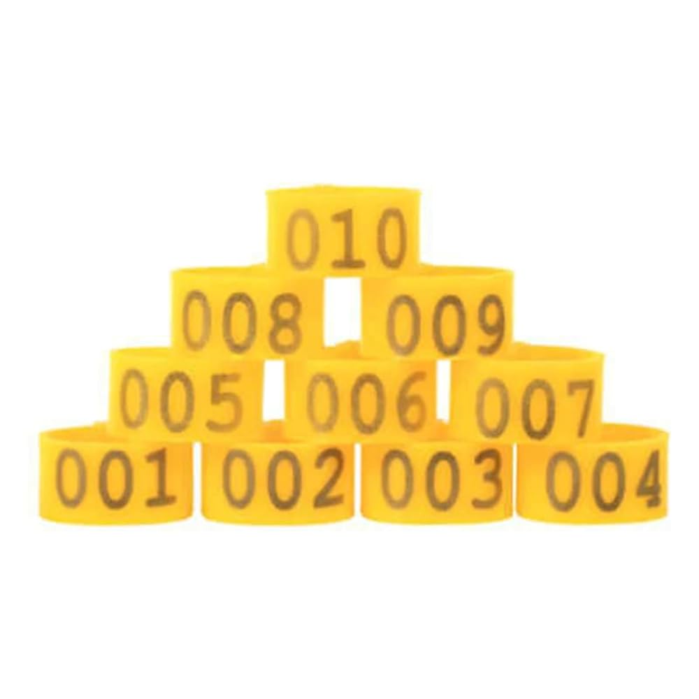 Foot Tag Clips Bird Ring Leg Bands, PE Poultry Leg Bands for Birds 100 Pieces Multicolor Numbered 001-100 Inner Diameter 16mm(Yellow) in Kuwait