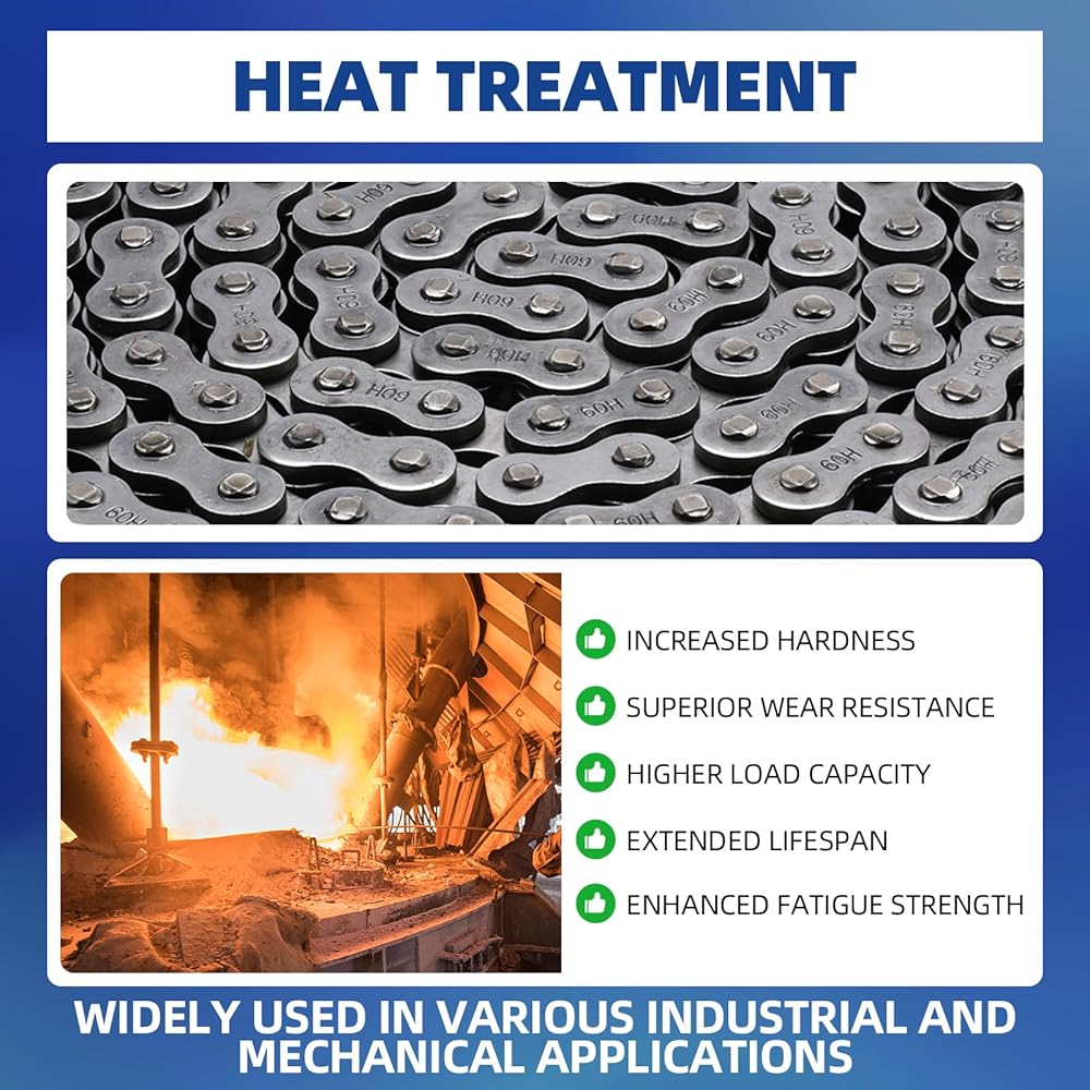 Precision Heat-Treated Durability: Heat-treated pins, plates & rollers resist fatigue and deformation—50% longer service life vs. standard chains in high-torque applications
