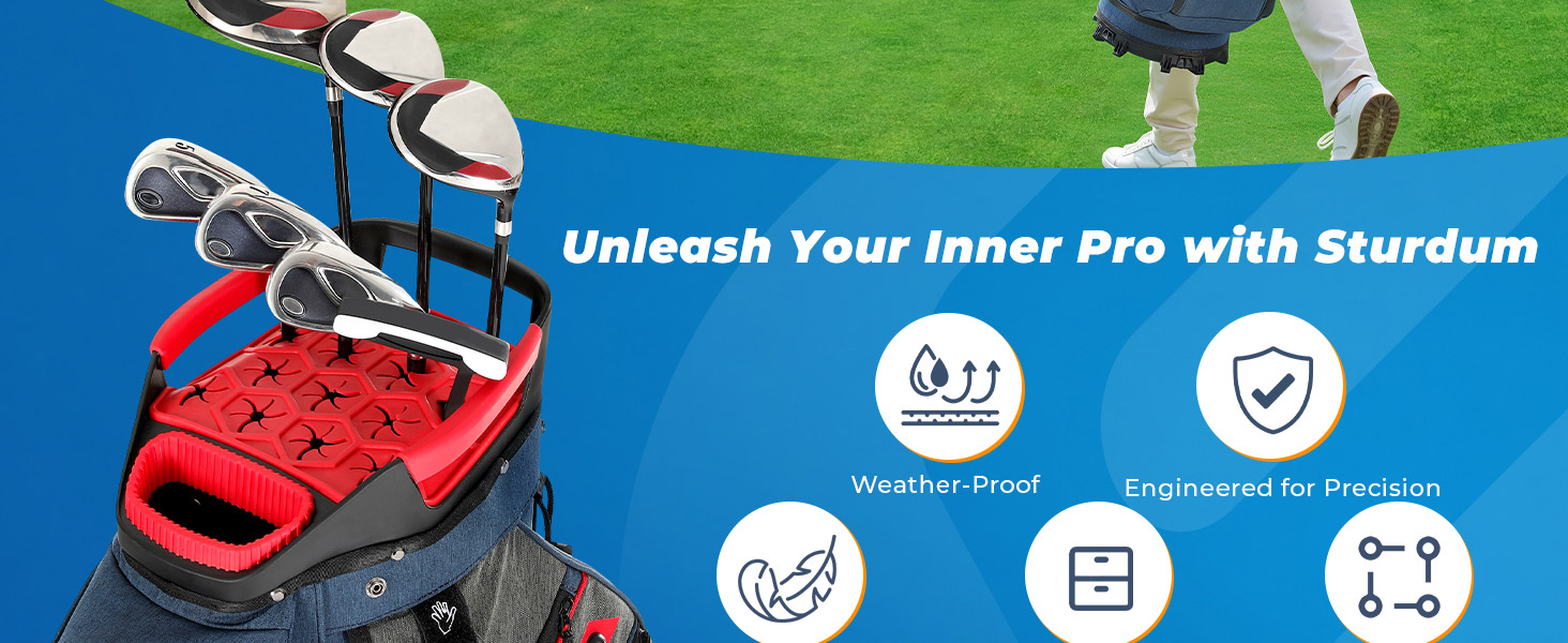 Quiet by Design: Say goodbye to the clatter of club collisions and enjoy your game. Our rubber molded grip top and padded dividers absorb vibrations, reducing noise and protecting your clubs as you navigate the course. Every move—from cart to cart, across the entire course—is effortless.