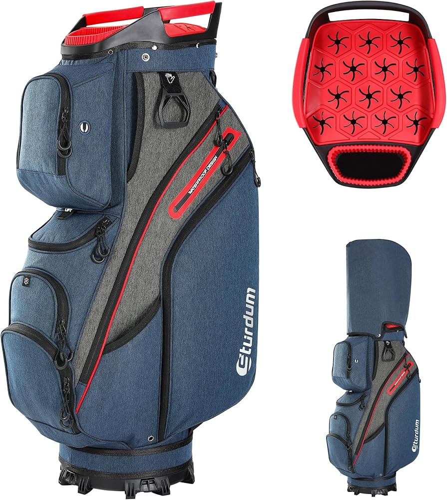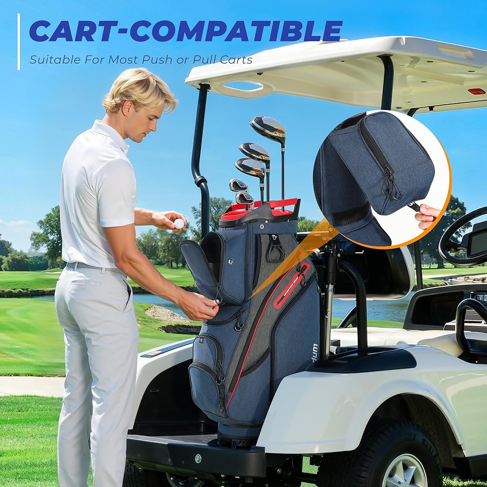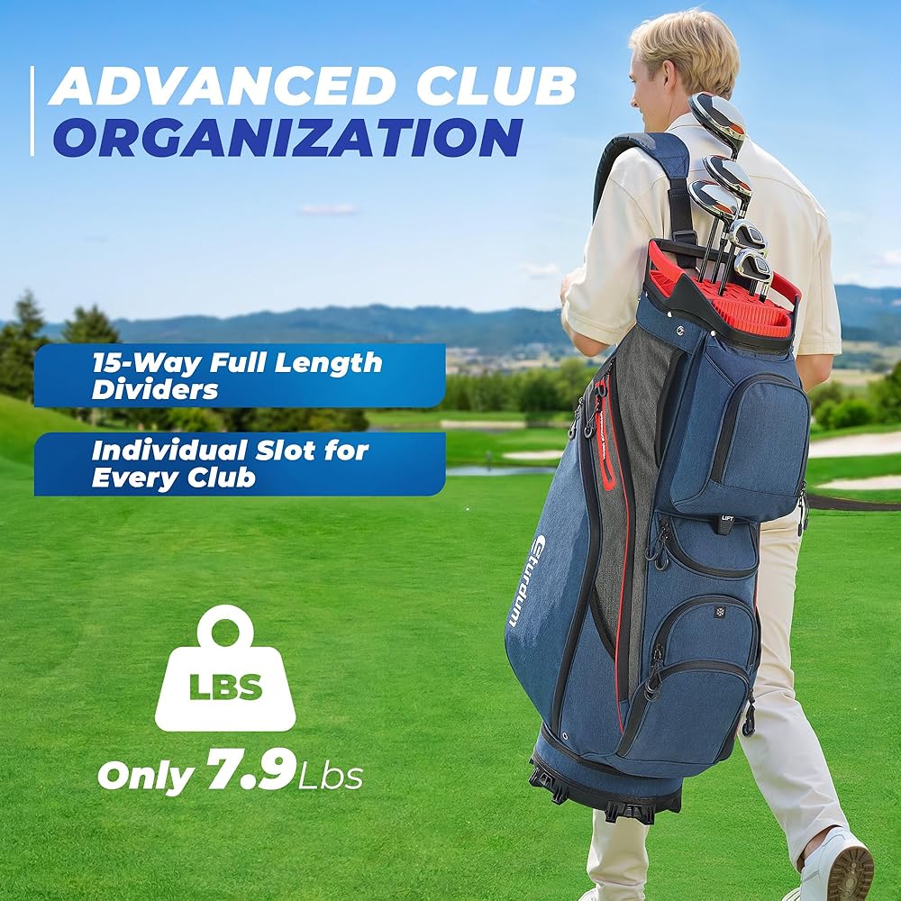 Golf Cart Bag with Rubber Grip Top Rigid Inner Shell, Quiet & Safe 15 Way Organizer Full-Length Dividers, Lightweight Cart Bag with Cooler Pockets, Handles for Men and Women