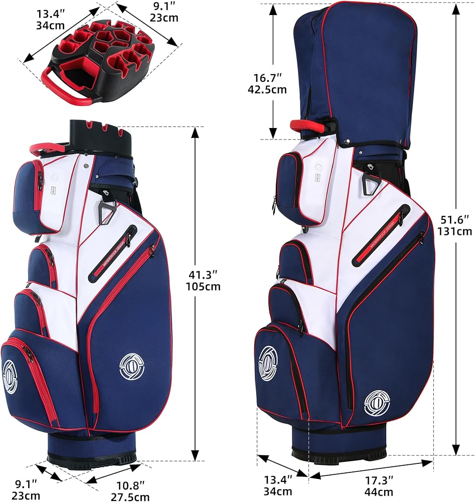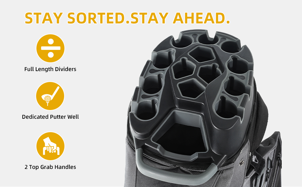 ✅ Silent T-Lock Design: No more clattering clubs—just pure focus. Our 14-way T-Lock organized top keep every club locked firmly and quietly in place, shielding them from bumps and scratches whether you're cruising the fairway or heading home