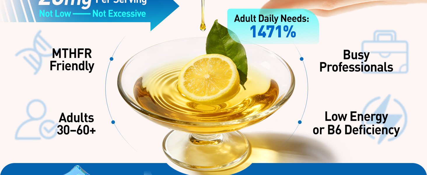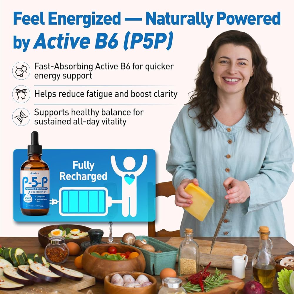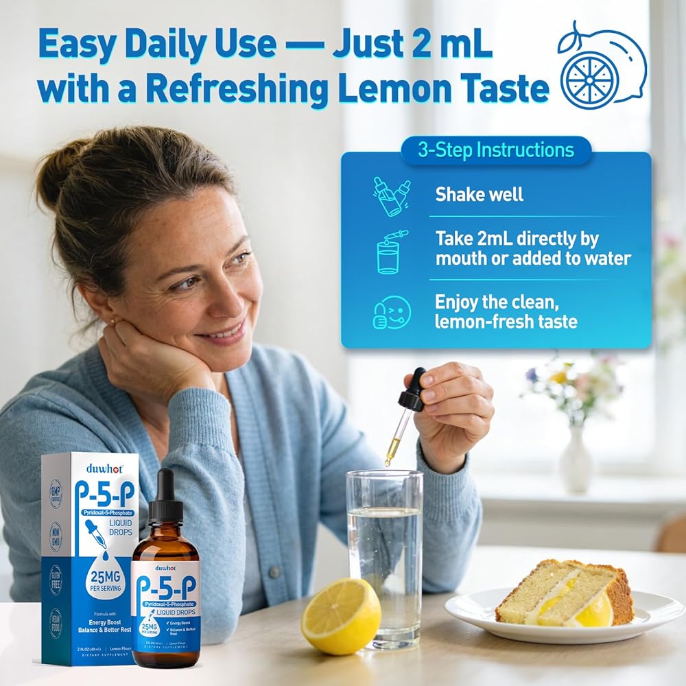 Lemon Flavor & Fast Absorption: Enjoy your daily p5p vitamin b6 25 mg—just smooth, great-tasting lemon drops. This p5p vitamin b6 liquid drop absorbs quickly and efficiently, making it easier for your body to use