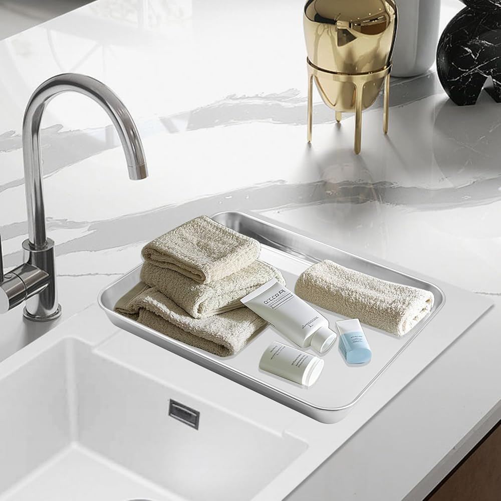 【Marginal Design】 The 12.2 x 9.5 Inch stainless steel medical tray moderate edge height and smooth roll lip prevent items from falling off, protecting your supplies and preventing spills. The edges are designed to be safe and comfortable to handle.