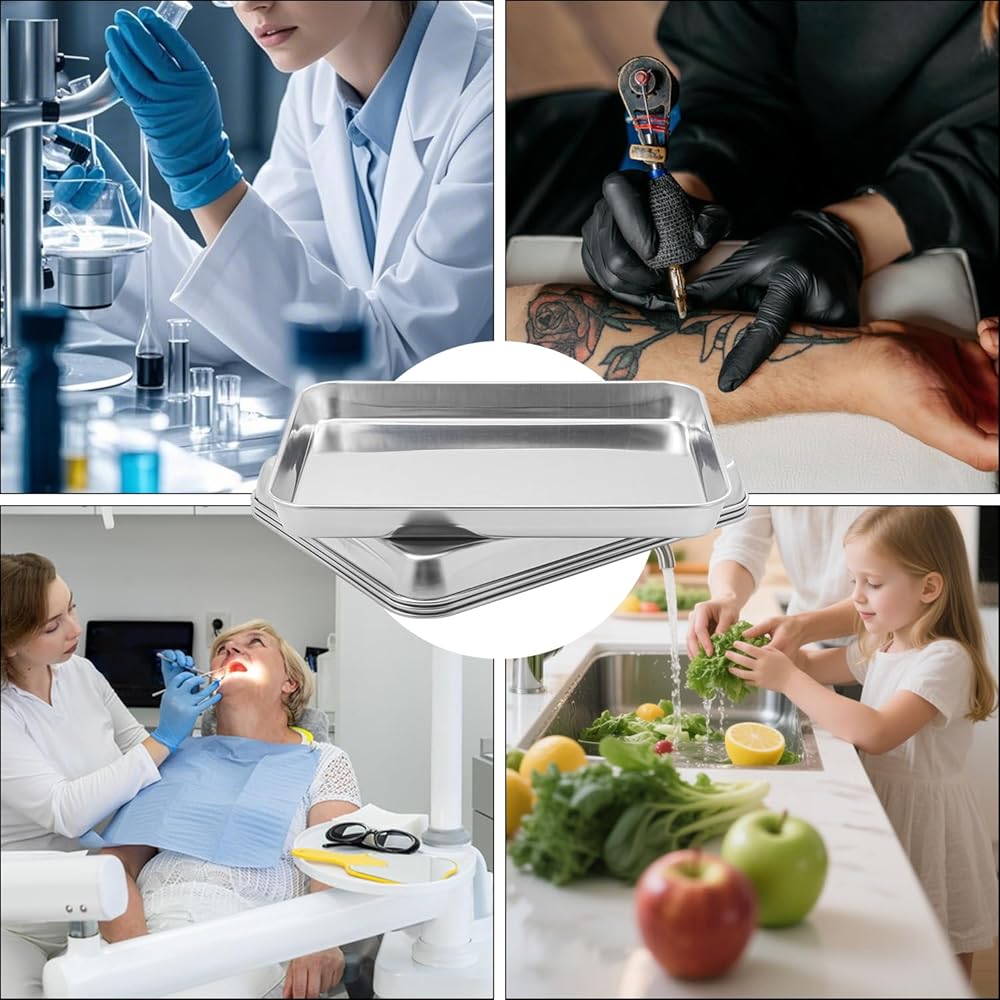 【Versatile Use】 These Rectangle stainless surgical trays are perfect for organizing medical instruments, dental tools, tattoo supplies. The flat bottom design provides stability and ease of use.