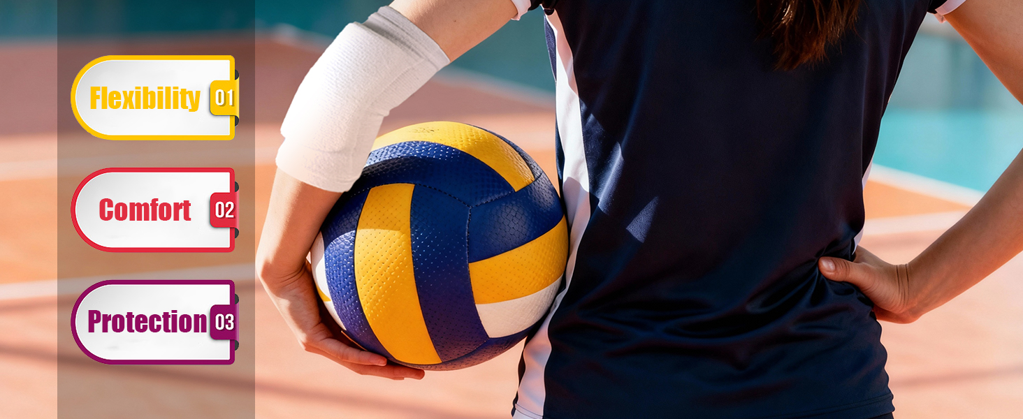 Comfortable & Flexible: These elbow pads are made with highly elastic, breathable, and comfortable fabric. The bowed EVA pads are not bulky. Volleyball players can move freely and flexibly, while the pads stay securely in place on the elbows.