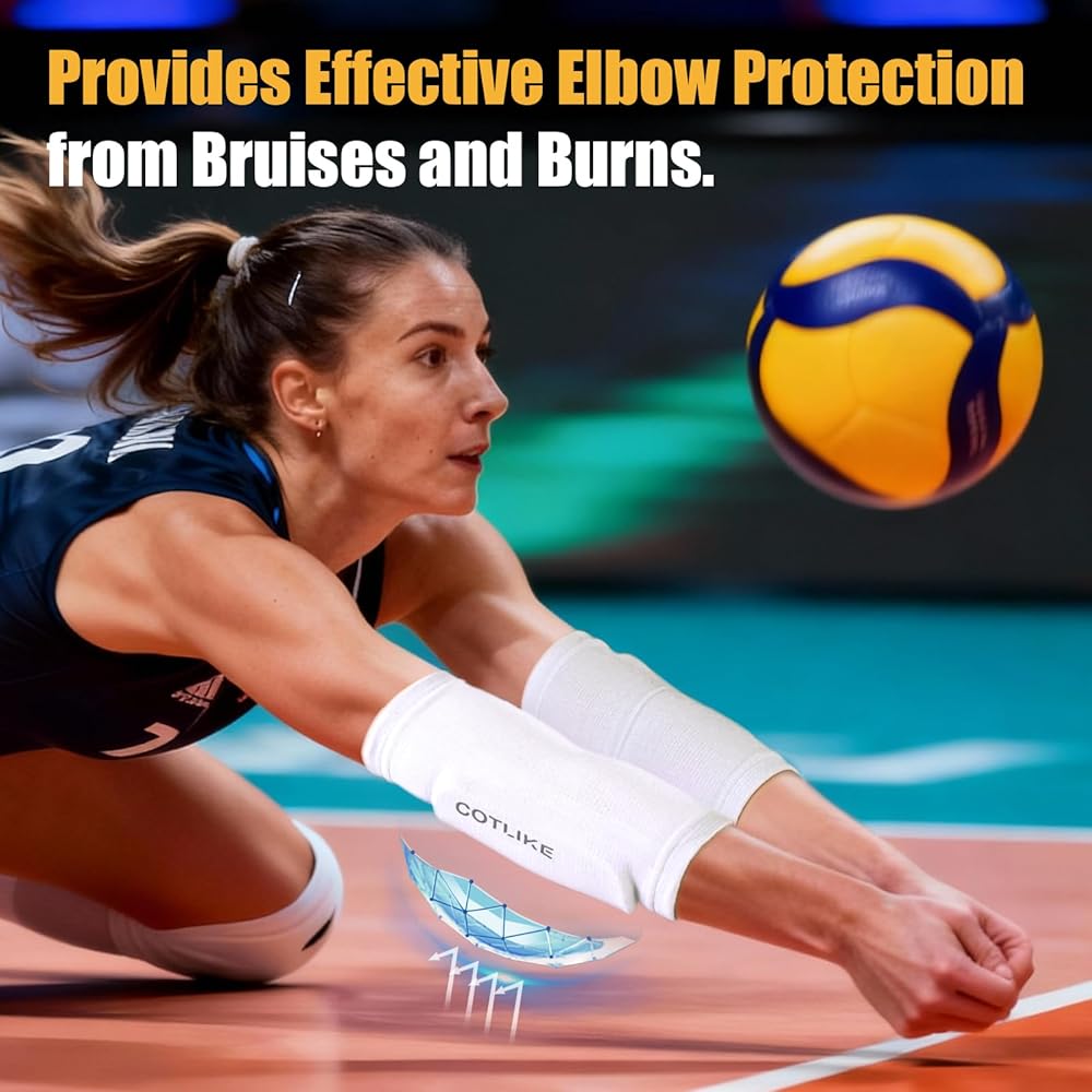 Elbow Protection: Helps prevent bruises and abrasions. Provides protection for volleyball players when diving for the ball. Volleyball elbow pads allow athletes to perform with greater confidence on the court.
