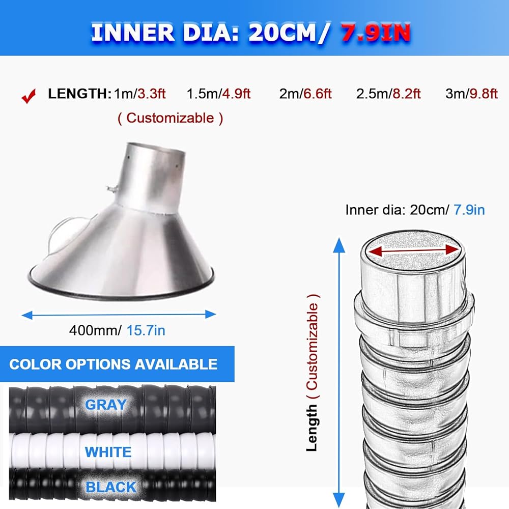 4.VARIETY OF SIZE OPTIONS: Available in multiple diameters (Inner Dia-100mm/3in, Inner Dia-160mm/6.3in, Inner Dia-200mm/7.9in) and lengths from 1m/3.3ft to 3m/9.8ft to meet different requirements. Ideal for various applications, ensuring flexibility and convenience for users. Choose the perfect fit for your projects !