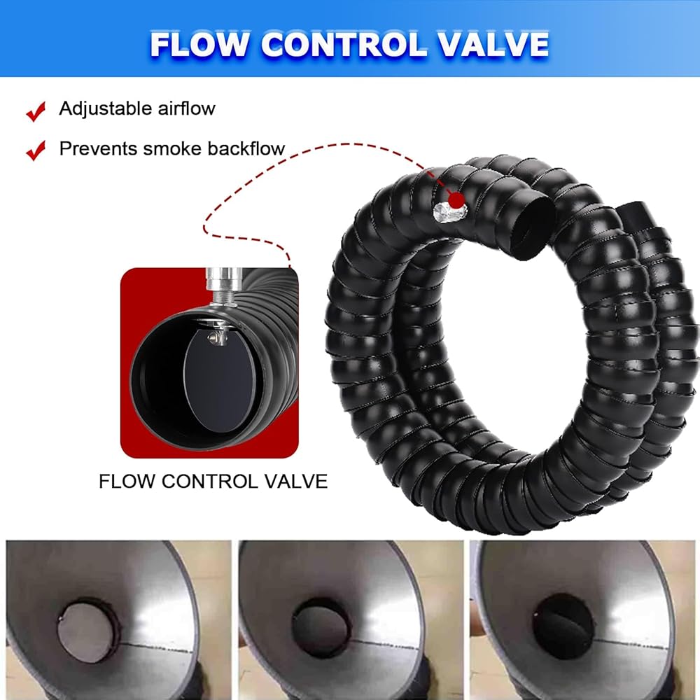5.Detachable Stainless Steel Nozzle: This product includes a detachable nozzle with a versatile valve that provides three airflow settings (Closed, Half-Open, Fully Open). It effectively minimizes smoke and dust backflow, making it ideal for various applications in the kitchen and outdoor grilling. Enjoy enhanced control and convenience with this essential tool for smoke and dust management.