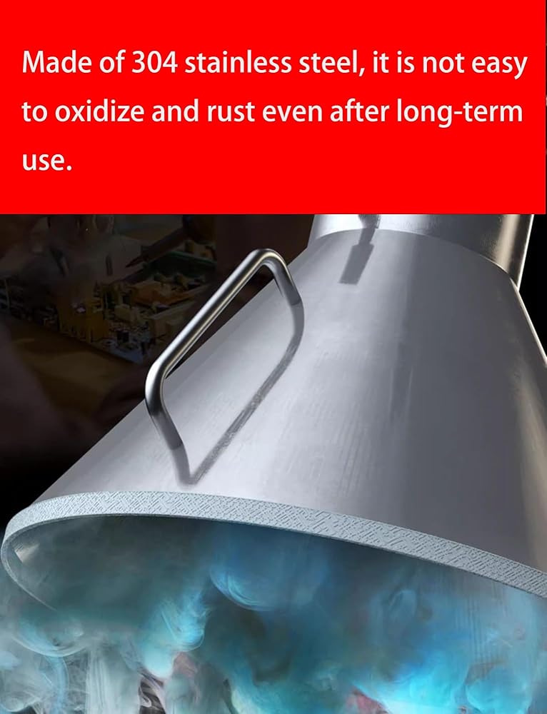 5.Durable Stainless Steel Design: Made from high-quality 304 Stainless Steel, this Fume Hood is ideal for Welding Shops and Chemical Areas. It offers excellent resistance to harsh environments, ensuring long-lasting performance and easy maintenance. Optimize your workspace with this reliable solution for safety and efficiency.