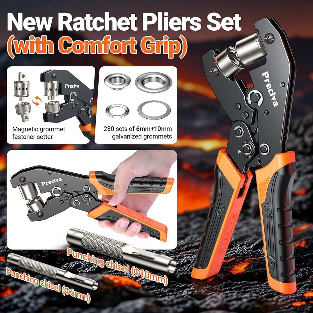【Ergonomic and User-Friendly】The grommet tool is designed with a comfortable non-slip handle that reduces fatigue during use. Additionally, its own ratchet device, which can reduce the pressure of the buckle. the included fabric hole punch allows for precise alignment of grommets, making your crafting tasks quicker and hassle-free.