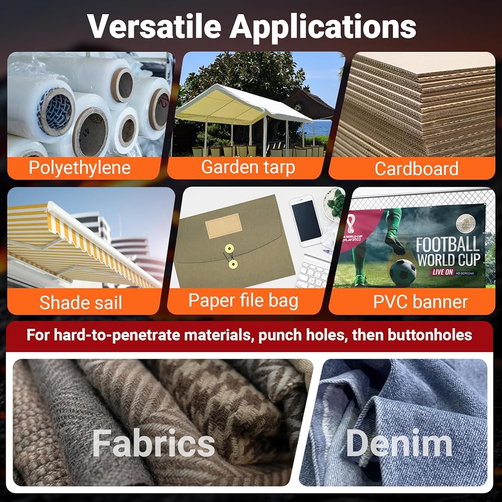 【Versatile Applications】This comprehensive grommets kit is suitable for PVC banners, signage, posters, leather goods, and tents, among other applications. It is also an ideal choice for adding decorative elements to clothing, bags, and shoes. Whether you're working on home projects or creative endeavors, this grommet tool kit meets all your needs.