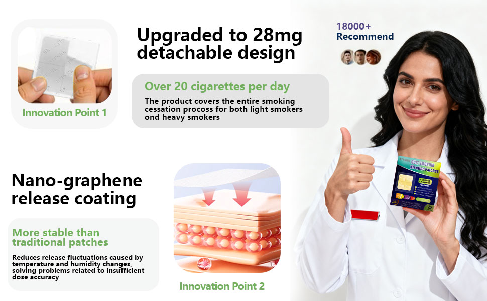 🔴 1 PATCH = 4 STEPS — Pre-perforated into 4×7mg squares. Use full 28mg to start, tear down to 21mg, 14mg, or 7mg as you progress. No new box needed for each stage.