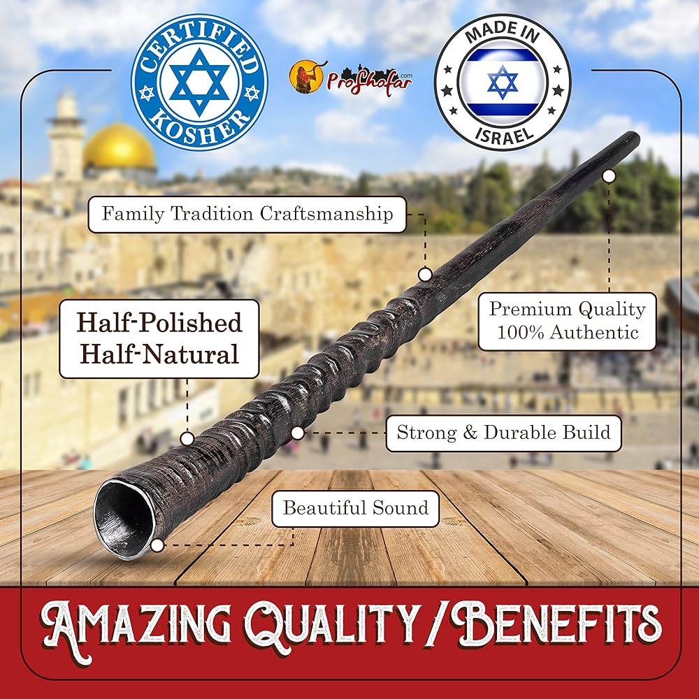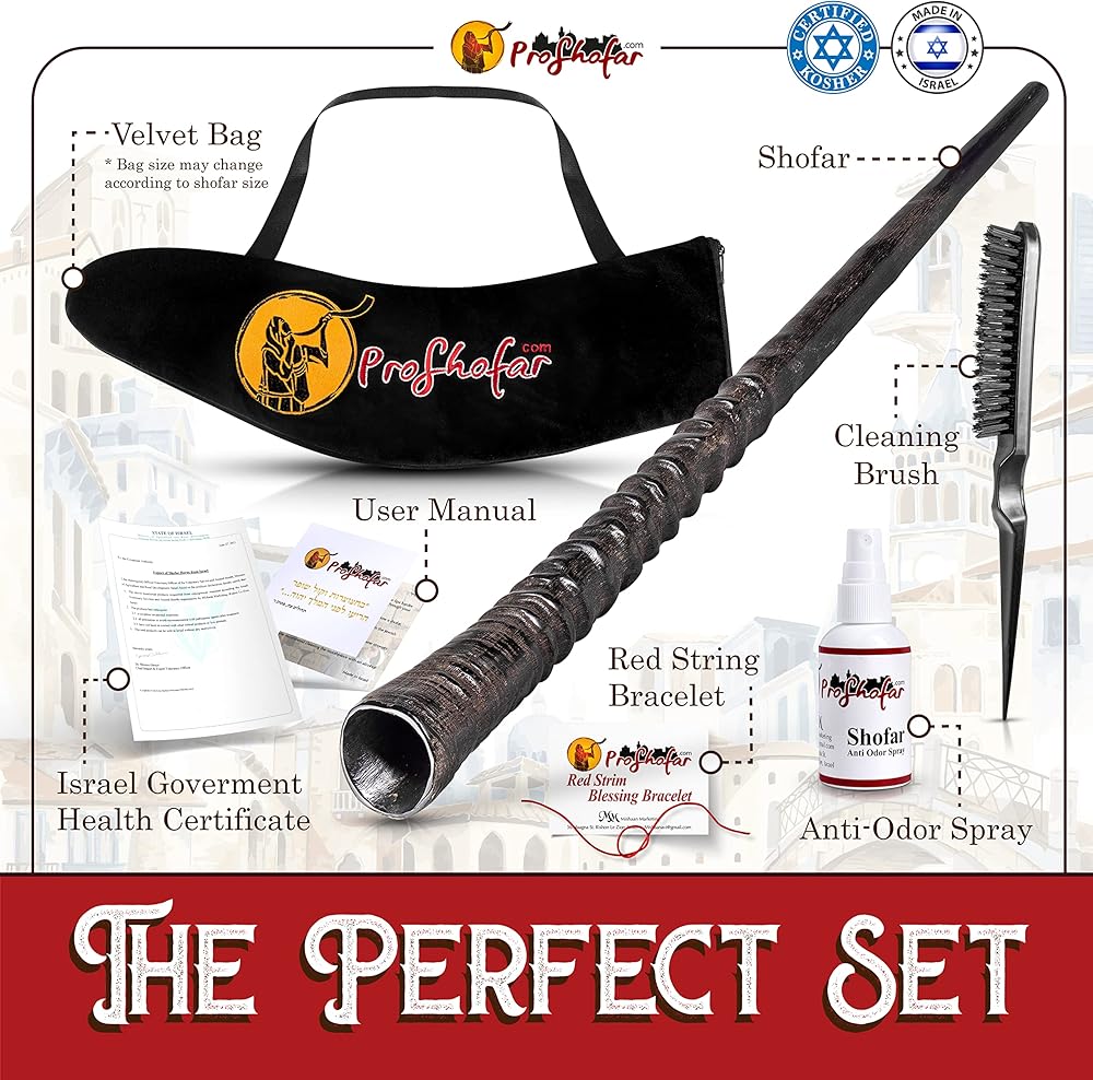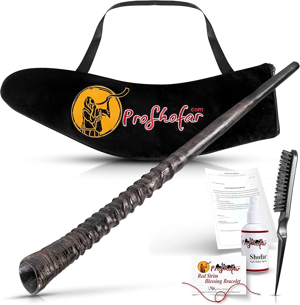 Exotic Shofar Gemsbok Oryx Horn Set – Half Polished - Plus Original Kabbalah Red String Bracelet from Israel (20"-24")