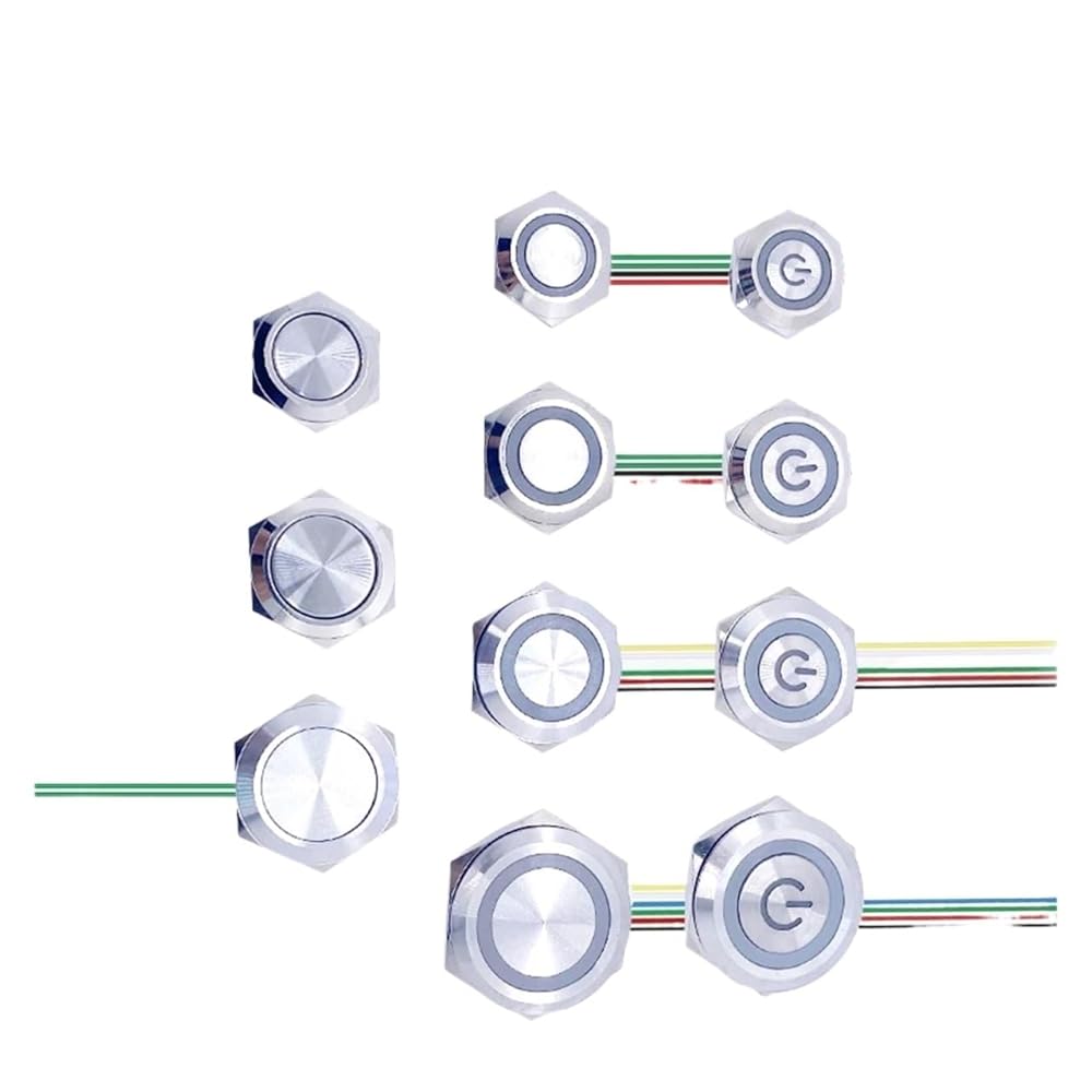 1PCS 19/22/25/30mm Ultra Short LED Light Metal Push Button Switch with Wire 3-6V 12-24V Momentary Reset Waterproof Stainless Steel(Blue Circle,3-6V,30mm-Balck Shell)