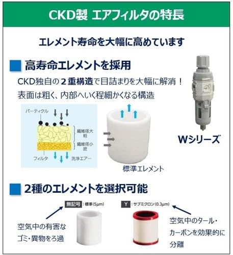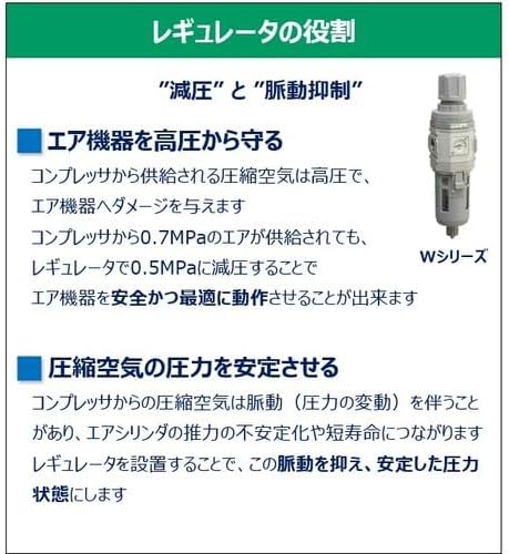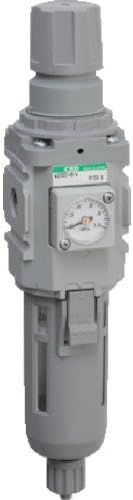 The air filter and regulator are integrated into a compact package. The FRL2000 series is a small and large flow. It is compact and 2.0 inches (50 mm) between surfaces. High performance with new material elements.
