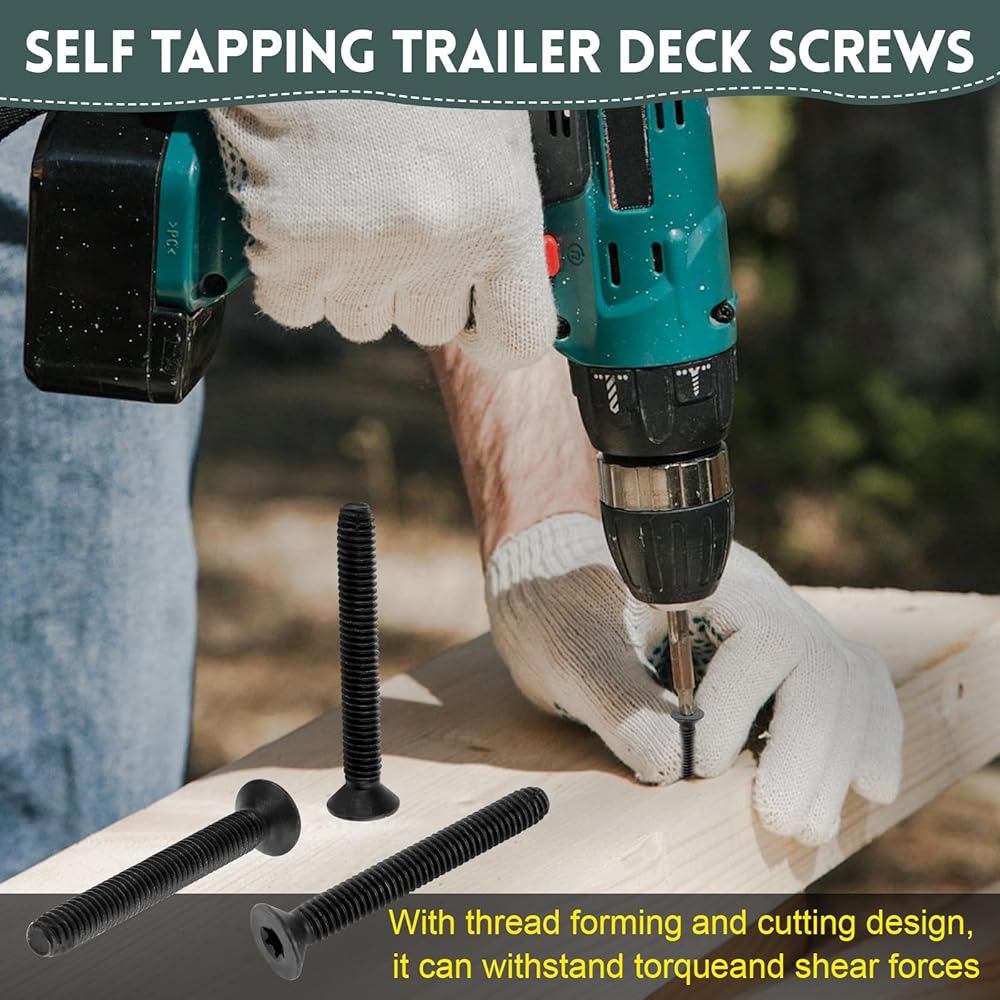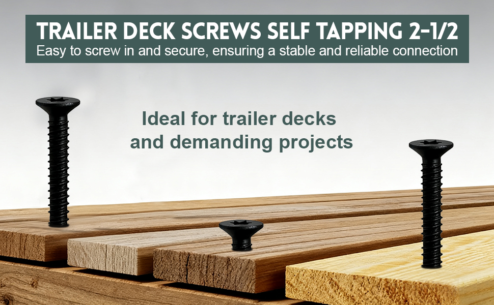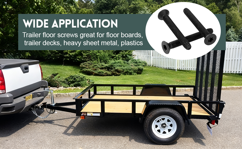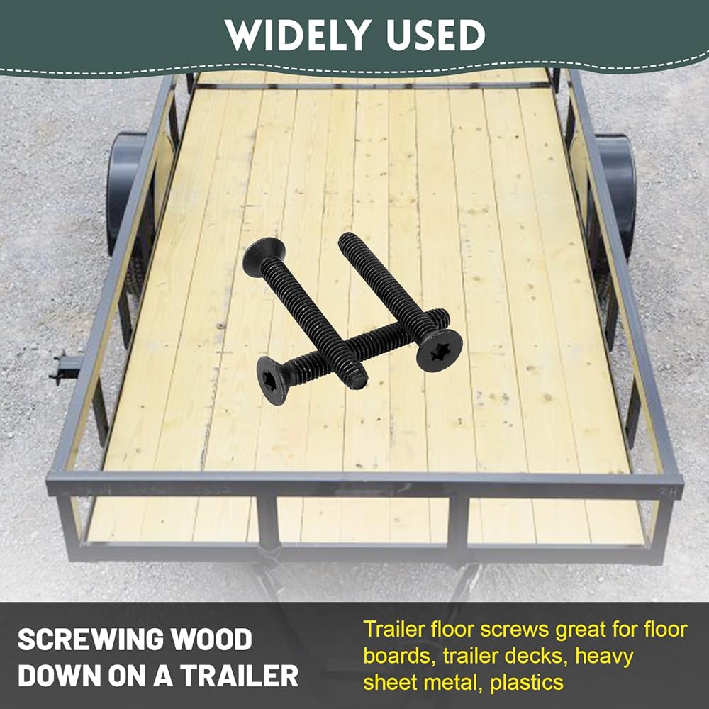 Widely Use: Trailer decking screws self tapping black and ideal for applications such as floor boards, trailer decks, heavy sheet metal, aluminum, securing wood on a trailer, rebuilding a utility trailer, and flatbed trailers, among others