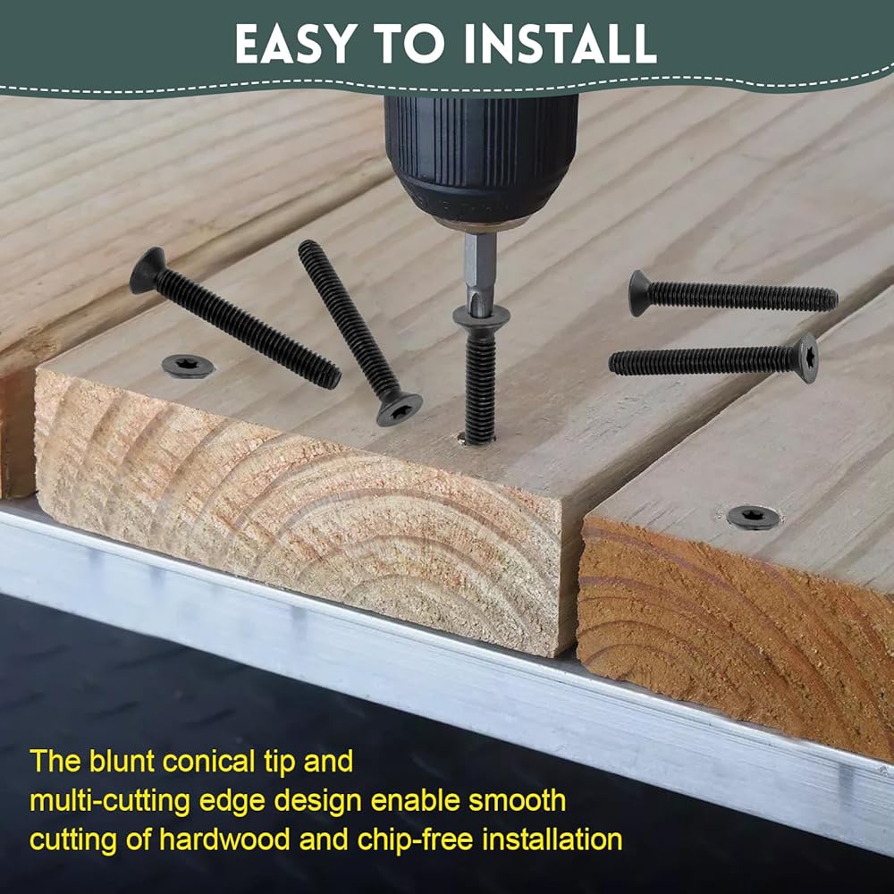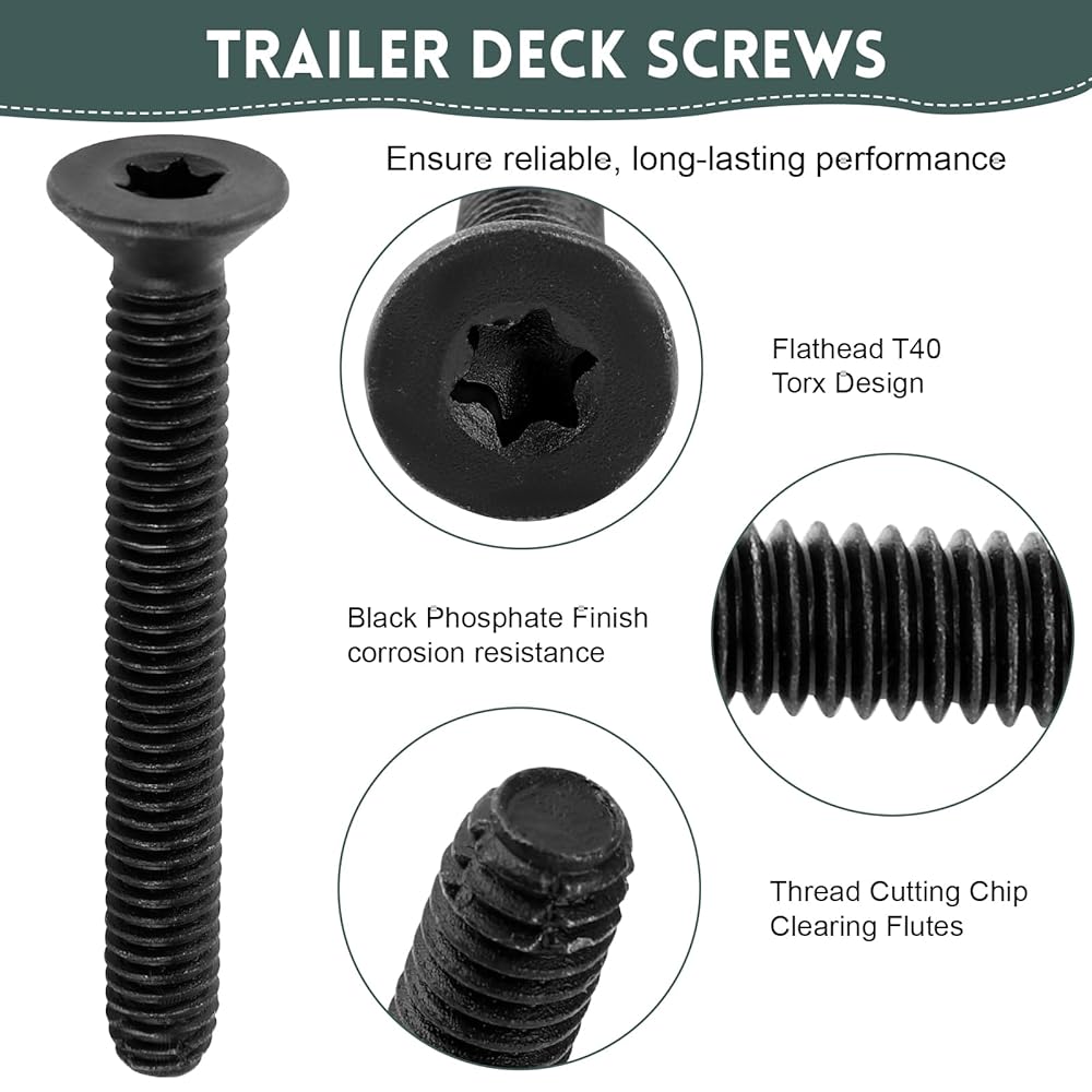 High-Quality Materials: Self tapping trailer deck screws made of hardened steel construction with a black phosphate coating that fights humidity. These screws are built to withstand vibrations, temperature swings, and harsh environments, ensuring reliable performance