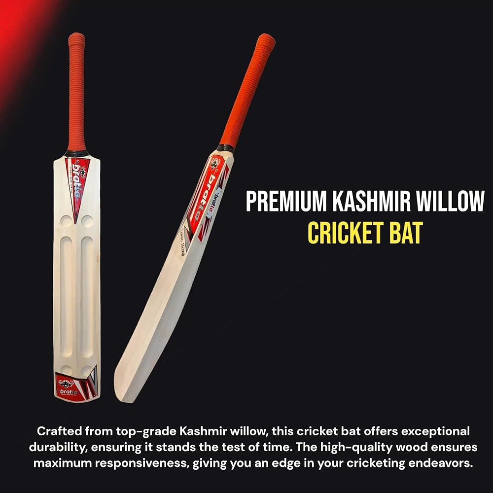 Elevate your cricket game with the Bratla Scoop Jumbo Kashmir Willow Cricket Bat. This adult-sized, lightweight wooden bat is expertly crafted from premium Kashmir willow, making it ideal for both hard tennis ball and softball cricket. Key Features: 🏏 Versatile Performance: The Bratla Scoop Jumbo Kashmir Willow Cricket Bat is your go-to choice for a wide range of cricketing scenarios. Whether you're facing a hard tennis ball or a softball, this bat delivers consistent and powerful performance. 🌿 Premium Kashmir Willow: Crafted from top-grade Kashmir willow, this cricket bat offers exceptional durability, ensuring it stands the test of time. The high-quality wood ensures maximum responsiveness, giving you an edge in your cricketing endeavors. 🔨 Robust Construction: The bat features reinforced edges and a sturdy handle, providing you with unmatched stability and power. It's designed to withstand the rigors of the game, ensuring you can rely on it during intense matches. 💥 Explosive Power: The specially designed profile of the Bratla Scoop Jumbo Kashmir Willow Cricket Bat maximizes your power on the field. Whether you're aiming for a boundary or a defensive stroke, this bat gives you the explosiveness needed to excel. 🎯 Precision Control: With its well-balanced design and ergonomic handle, this cricket bat offers precision control that suits both seasoned cricketers and beginners. You can confidently place your shots exactly where you want them, becoming a valuable asset to your team. 🎁 Bonus Bat Cover: Your Bratla Scoop Jumbo Kashmir Willow Cricket Bat comes complete with a bonus bat cover, ensuring that your prized possession remains protected and ready for action. Whether you're a professional cricketer or a recreational player, the Bratla Scoop Jumbo Kashmir Willow Cricket Bat is your ticket to enhanced performance, control, and power on the cricket field. Elevate your game and make every shot count with this exceptional cricketing companion.
