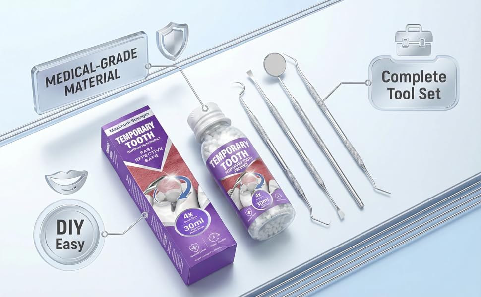 MEDICAL-GRADE MATERIALS & NATURAL-LOOKING REPAIR: Crafted with medical-grade thermoplastic beads, this tooth repair kit for broken teeth offers fast, seamless fixes for damaged, chipped, or missing teeth in just minutes