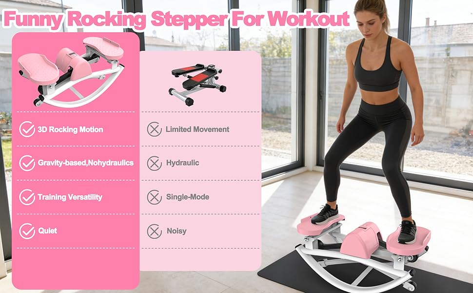 Ergonomic & Low-Impact Knee Protection Designed with a unique rocking trajectory and shock-absorbing buffers, this stepper minimizes joint impact and protects your knees from strain. The oversized, non-slip foot pedals ensure maximum stability, making it perfect for seniors, beginners, or fitness.