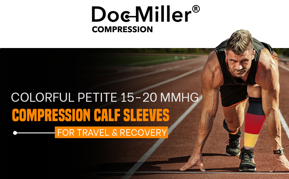 Doc Miller Calf Compression Sleeves for Short People Men and Women Petite 15-20mmHg, 1 Pair Shin Splint Sleeve Recover Varicose Veins and Pain Relief, Blue White Red, Medium