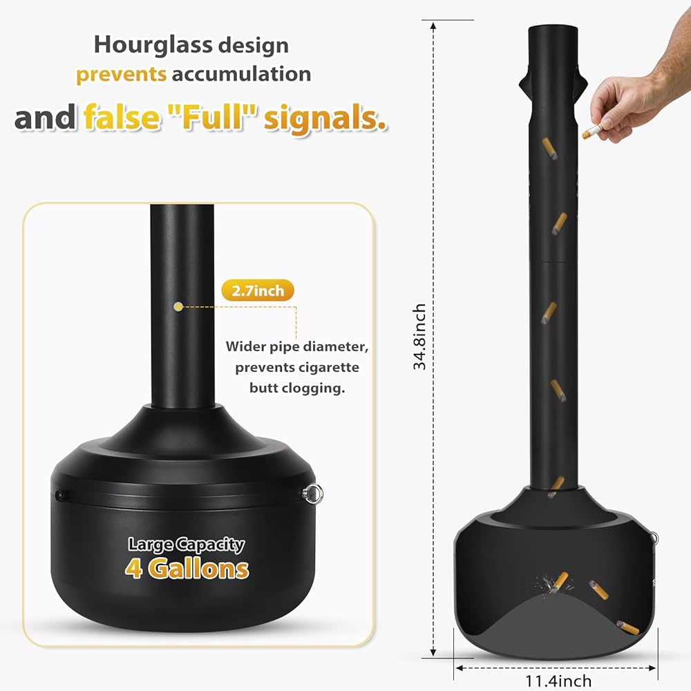 [Hourglass Design, Prevents "False Full"]Its 4-gallon capacity is paired with an hourglass base to prevent "False Full" from vertical stacking and a widened pipe to resist clogging — fills fully, no more blockages.