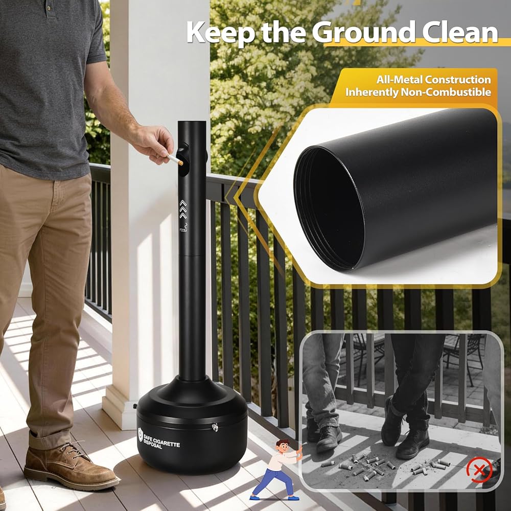 [Outdoor Cleanup]This outdoor trash can efficiently collects ash, preventing litter and scatter. The metal ash collector is easy to disassemble and clean, helping to keep both outdoor and indoor areas neat and tidy.