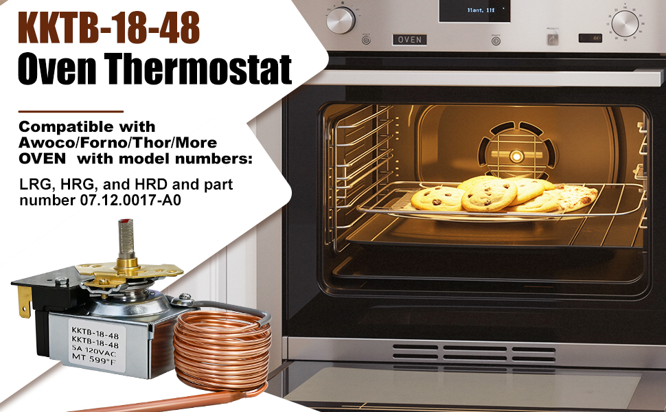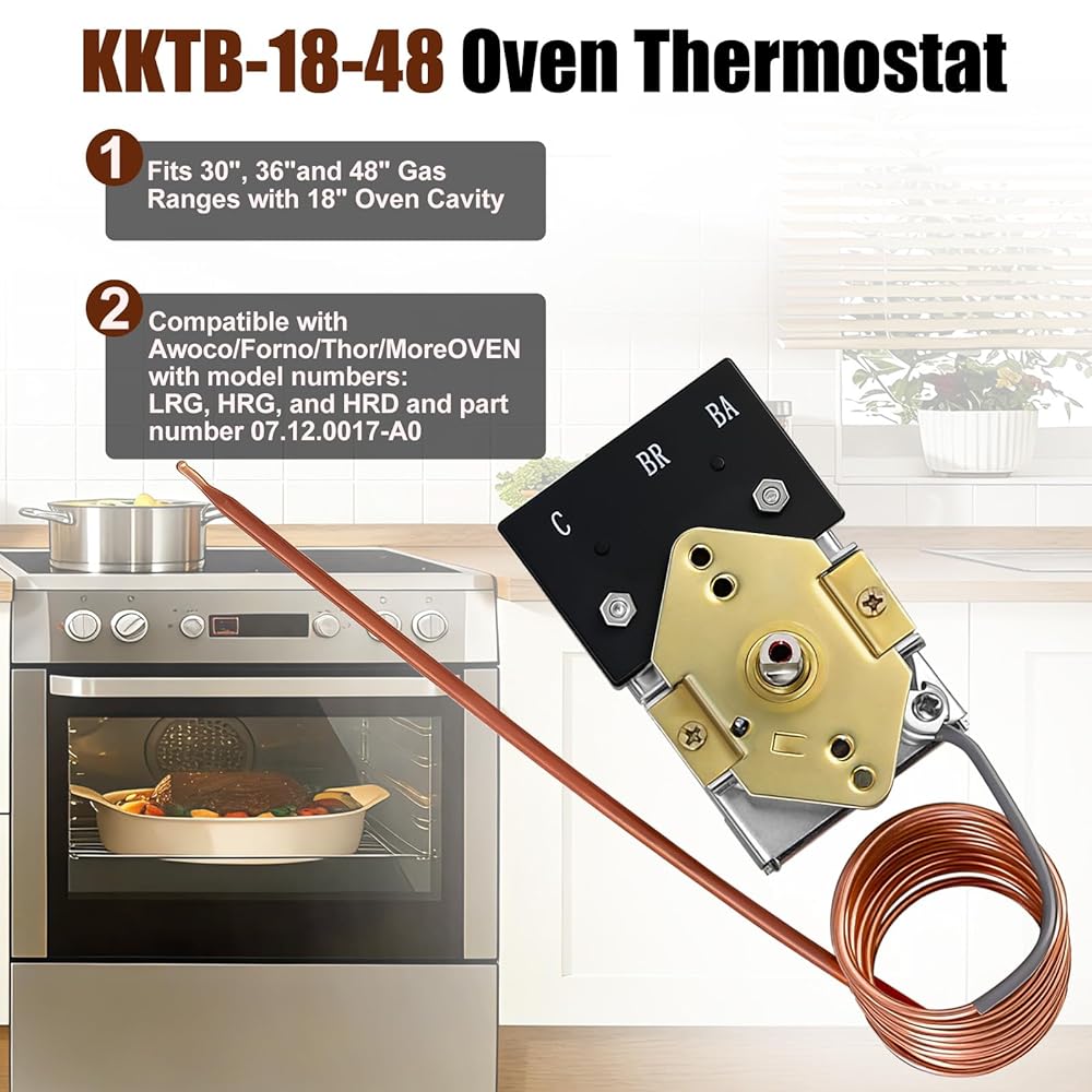 Wide Compatibility: This oven thermostat is specifically designed to replace the KKTB-18-48 thermostat. Tested compatible with Forno/Thor/Awoco 30-inch and 36-inch gas stoves and Thor . Before purchasing, please note: Verify the original part number and ensure the product appearance matches to confirm compatibility.