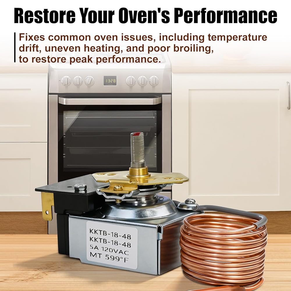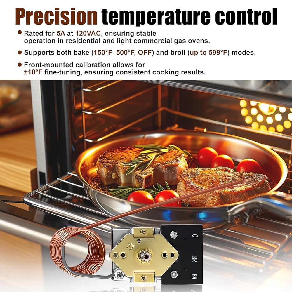 Complete Temperature Control Range: This thermostat supports temperature adjustment from 150°F to 599°F, covering standard baking (150-500°F) and grilling (up to 599°F) requirements. Rated at 120V AC and 5A, it features knob control to help ovens maintain set heating states, making it suitable for everyday cooking scenarios