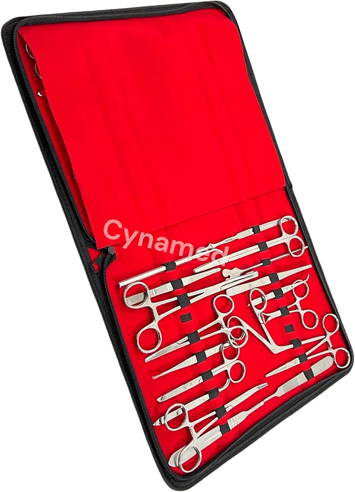 157 Pcs Advanced Dissection Kit For Anatomy & Biology Students With Scalpel Knife Handle 1 SCISSORS ! FORCEPS ! HEMOSTAT-! Blades - Case THE PACKAGE INCLUDES: 1 EA FOERSTER SPONG BALLENGER FORCEPS STRAIGHT 7 ” 1 EA KELLY HEMOSTAT FORCEPS CURVED 7” 1 EA HARTMAN ALLIGATOR FORCEPS 3.5'' SERRATED 1 EA SPLINTER FORCEPS SERRATED 3.5" 1 EA STRAIGHT SCISSORS 1 EA BERG CILIA FORCEPS 1 EA DISSECTING NEEDLE STRAIGHT 1 EA DISSECTING NEEDLE CURVED 1 EA OPERATING SCISSORS SHARP/SHARP STR 4.5 ” 1 EA OPERATING SCISSORS SHARP/BLUNT STR 4.5 ” 1 EA OPERATING SCISSORS BLUNT/BLUNT STR 4.5" 1 EA METZENBAUM SCISSORS 7" STR 1 EA BACKHAUS TOWEL CLAMP 3.5" 1 EA ADSON TISSUE FORCEPS 1X2T 4.75" FINE POINT 1 EA ADSON SERRATED FORCEPS 4.75" FINE POINT 1 EA ADSON BROWN FORCEPS 4.75" 1 EA IRIS FORCEPS 4.5" HALF CURVED 1X2TEETH 1 EA IRIS FORCEPS HALF CURVED 4" SERRATED 1 EA IRIS FORCEPS 1X2T FINE POINT 4" STRAIGHT 1 EA IRIS FORCEPS STRAIGHT 4" SERRATED 1 EA FULL CURVED IRIS FORCEPS 4" 1X2 TEETH 1 EA FULL CURVED IRIS FORCEPS 4" SERRATED 1 EA THUMB DRESSING FORCEPS 6" SERRATED 1 EA MOSQUITO FORCEPS 5" CURVED 1 EA MOSQUITO FORCEPS 5" STRAIGHT 1 EA WEBSTER NEEDLE HOLDER 5.5" 1 EA OLSEN HEGAR NEEDLE HOLDER 6" 1 EA MAYO NOBLE SCISSORS 1 EA IRIS SCISSORS 4.5" STR 1 EA IRIS SCISSORS 4.5" CVD 1 EA SUTURE STITCH SCISSORS 4.5" 1 EA SCALPEL HANDLE #4 1 EA SCALPEL HANDLE #3 1 EA SCALPEL HANDLE #7 20 EA STERILE BLADE #20 20 EA STERILE BLADE #21 20 EA STERILE BLADE #23 20 EA STERILE BLADE #10 20 EA STERILE BLADE #11 20 EA STERILE BLADE #15 1 EA DOUBLE ENDED PROBE 5" 1 EA SEEKER 1 EA PROBE WITH EYE