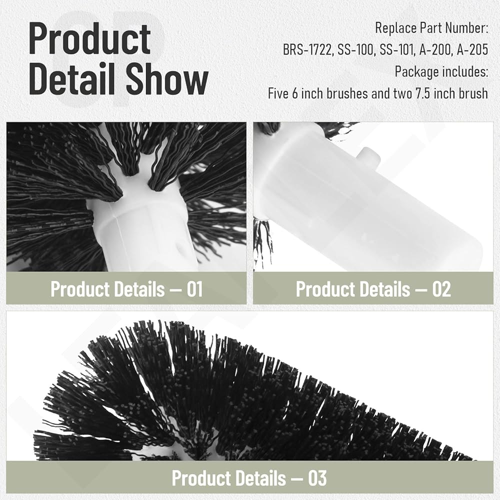 BRS-1722 Glass Washer Replacement Brush Set for Bar Ma-id Glass Washers, Including 5 x Brushes (6 inch) and 2 x Brushes (7.5 inch) Replaces SS-100, SS-101, A-200, A-205