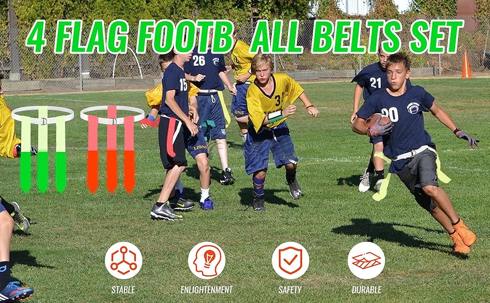 🌟Heavy-Duty materials: Made from premium PVC material, our belts are durable, flexible, and built to last through years of intense play. Each flag attaches with strong Velcro, enabling easy tear-away action: when pulled by a defender, the flag detaches cleanly while the belt remains on the offensive player. These football flags are tough and reliable, ideal for both casual and competitive play.