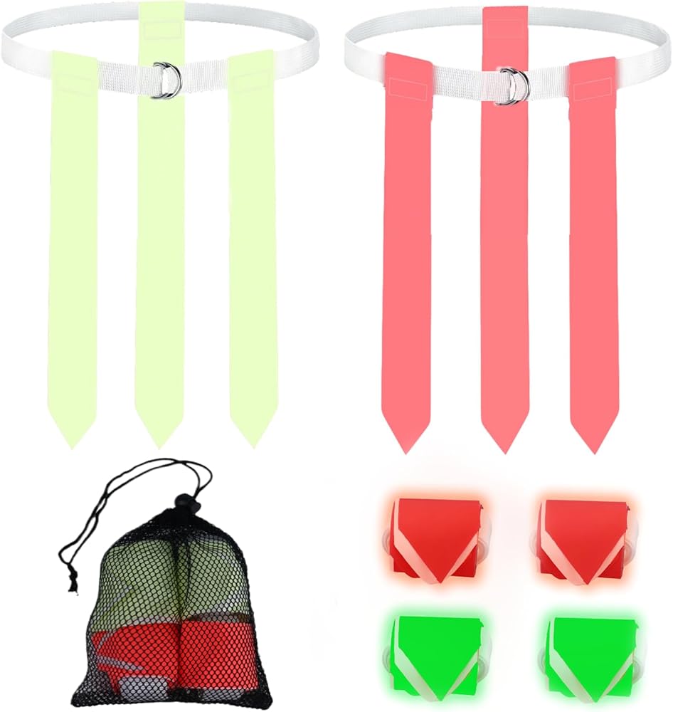 🌟Glow-in-the-Dark Flag Football Set: This flag football set includes 4 adjustable belts and 12 glow-in-the-dark football flags that charge quickly under sunlight or UV light and shine bright at night. Whether you're playing in the backyard, at a party, or during a night game, this glowing set adds energy and visibility to every play. Perfect for yard games or beach games with family and friends!