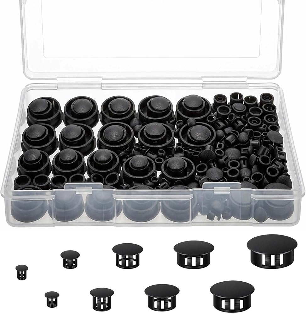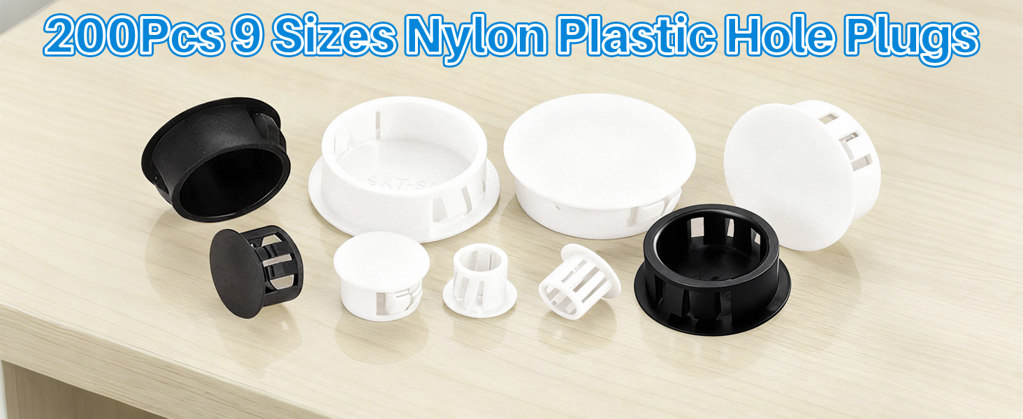 【9-Size Assortment Covers 99% Needs】Our plastic hole plugs include 9 common sizes from 1/5" to 1", with 60pcs 1/5", 25pcs each for 1/4", 5/16", 3/8" and 1/2", plus 10pcs each for 5/8", 3/4", 7/8" and 1". Whether you need to cover, hide and decorate holes, furniture screw holes, or DIY workbench drill holes, these round plastic hole plugs eliminate the need to buy separate packs for different sizes.