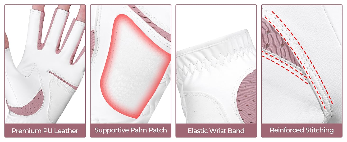 TEXTURED PALM FOR BETTER GRIP – The textured PU palm enhances grip and stability while supportive palm pads help reduce pressure and improve comfort. Designed to help women golfers maintain confident control throughout the game
