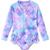 This girls long sleeve rash guard swimsuit has many kinds of printed style,Suitable for girls aged 4-10.