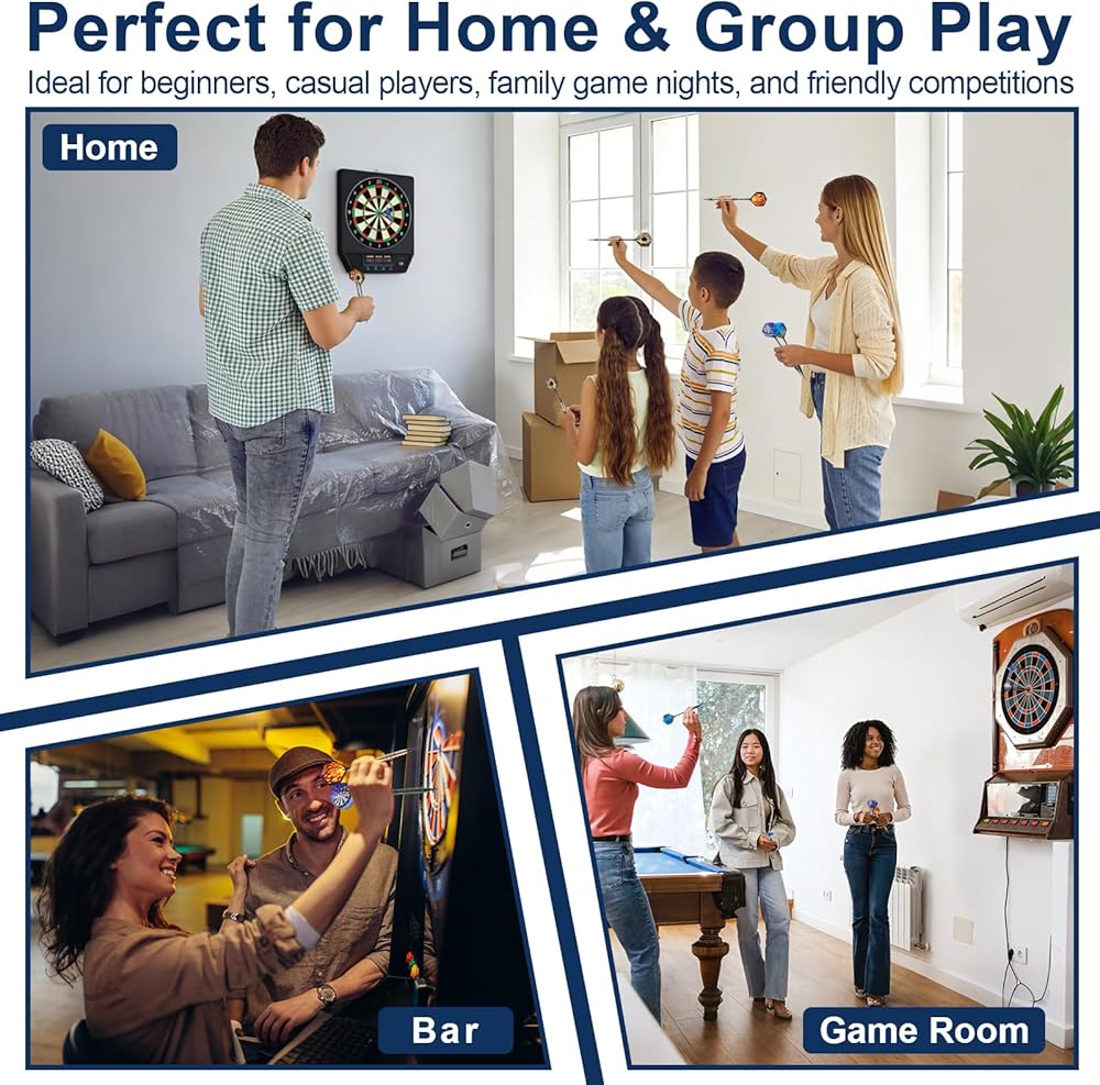 Complete Gift-Ready Dart Set with Case: Paired with a stylish gift box, storage tube, and tool kit, the electronic darts set suits all skill levels, from beginners to pros; Ideal for daily practice, family fun, parties, office use, bars/pubs, casual games