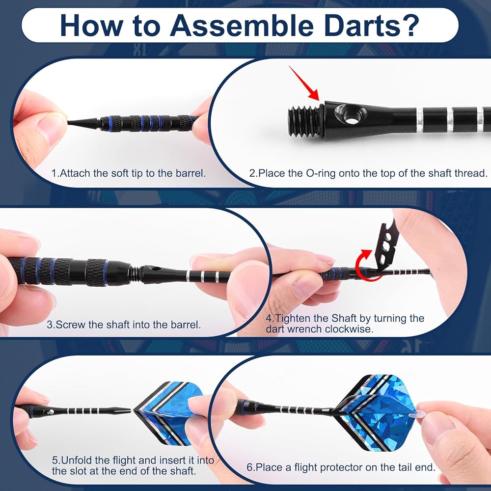 Unbreakable Aluminum Shafts & O-Rings: The soft tip darts feature 12 sturdy aluminum shafts, won't bend or break; Equipped with rubber O-rings, the shaft stay tightly secured to the steel barrels, eliminating loosening during your most competitive matches