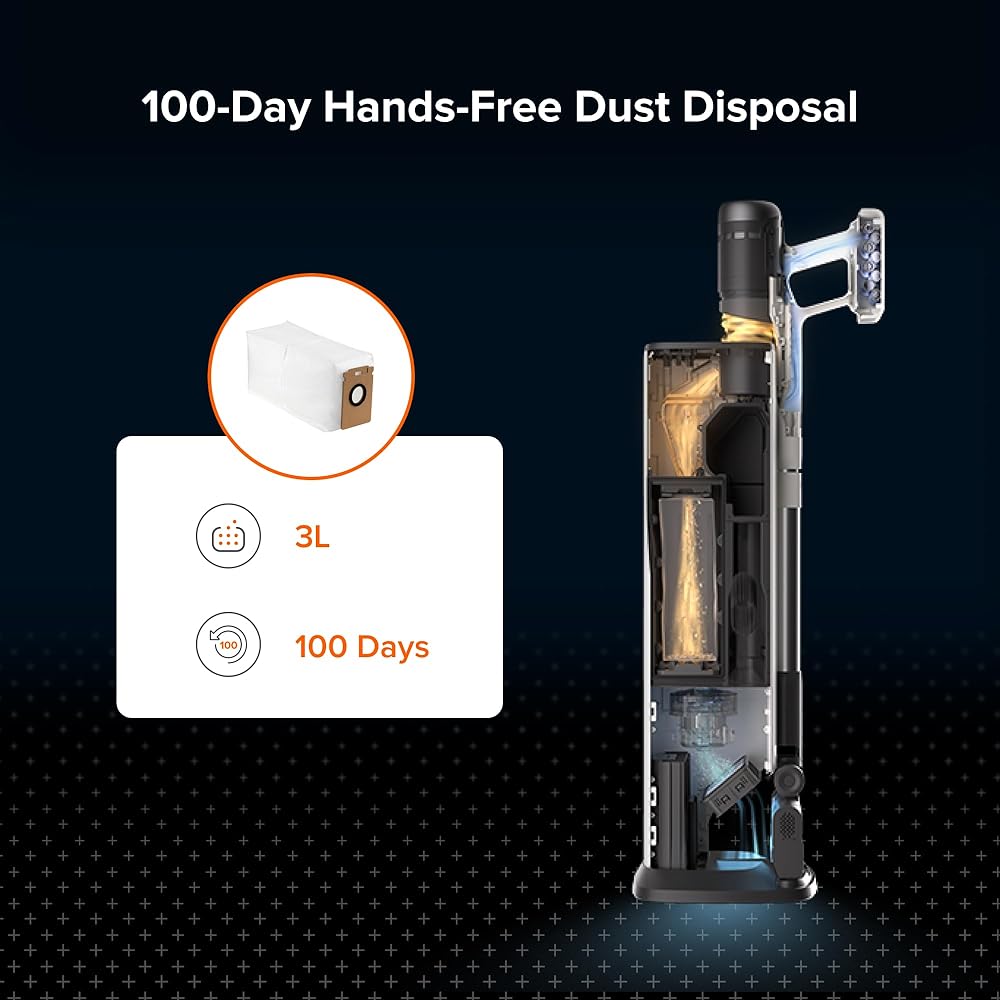 3L Large Capacity Dust Bag Replacement: Each vacuum bag has a large 3L capacity. When used with the automatic emptying base, it can automatically collect debris in under 10 seconds and lasts up to 100 days before needing replacement.
