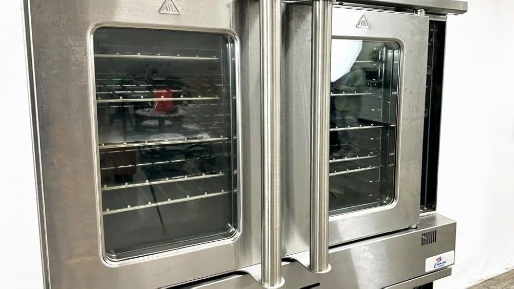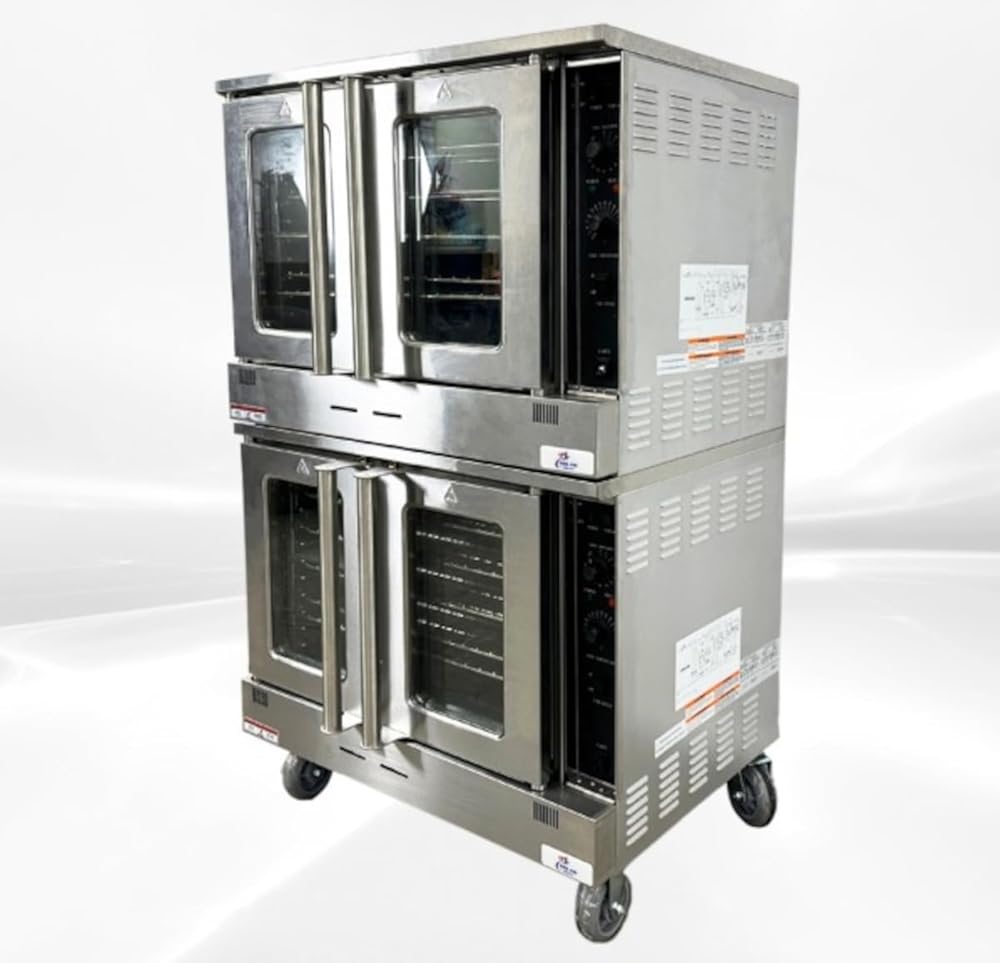 Commercial Convection Oven, Natural Gas, 60000 BTU, Single Deck, Four Legs, Restaurant Kitchen Bakery HRCO-60K-2 This Electric Commercial Convection Oven could deliver 60000 BTU/hr, which could easily be used to warm, cook or bakery. The porcelain enamel coated interior makes is easy to clean and maintain. Our Range has a overall size of 38""W X 31""D X 67""H, two Door with glass window. Crafted with anti-corrosion stainless steel and welded frame structure, this convection oven is designed to last for years with ultimate protection and easiest maintainance. The oven has a 60-minutes timer and temperature adjustment range from 150°F-500°F, controlled by the Dialing Knobs. The air circulation could effectively reduce cooking times (70%-80% ) while keep the quality of the food.It comes with 4 wheels. This Convection Oven can use either Natural gas, a 3/4 NPT rear gas connection is included, automatic ignition system.